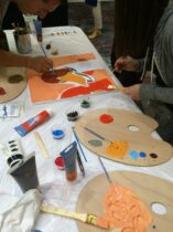 - Teams of 4-5 people paint a custom canvas together using paint-by-numbers